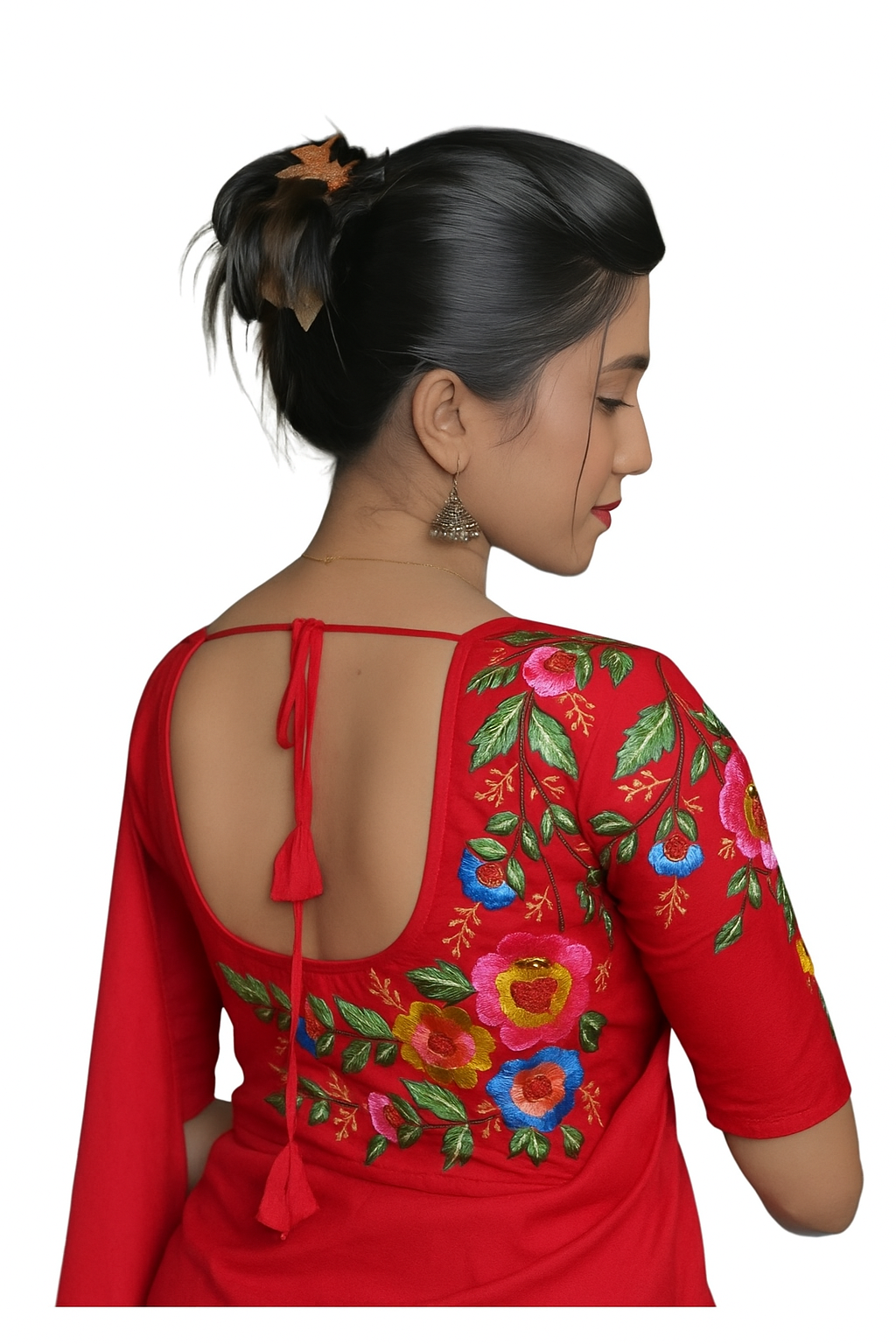 Perfect for daily wear, office wear, or family functions, this cotton Embroidery Design blouse is a must-have addition to every woman’s wardrobe. Match it with your favorite cotton or silk saree and minimal jewelry for a simple yet elegant appearance.